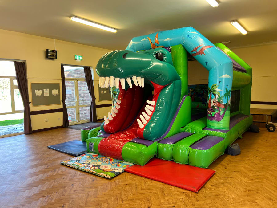 3D Dinosaur Bouncy Castle & Slide Combi for exporer & advernturer parties across Bedford & St Neots.