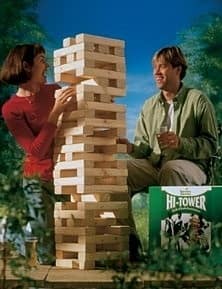 With our 58 giant, solid wood Jenga blocks, the Hi-Tower can rise from approximately 0.9m (3ft 6ins) at the start of the game, anywhere up to 1.5m (5ft) maximum in play! How high can you go? Find out by hiring this game for your family BBQ or birthday party. All of our giant garden games are ideal for school fairs and church fete style events too, as you will find that each game will attract different families and with their giant size, they are not easy to miss!