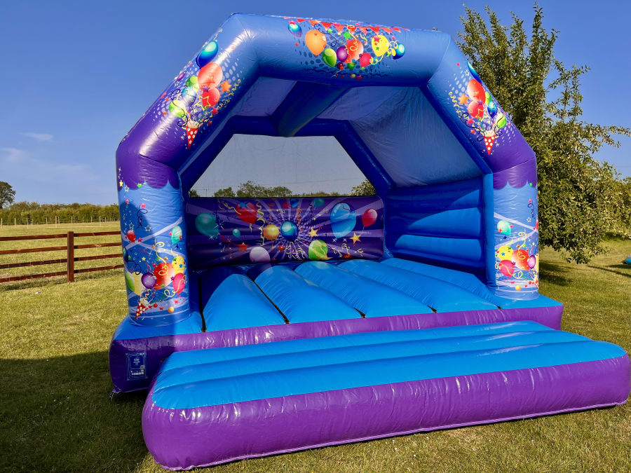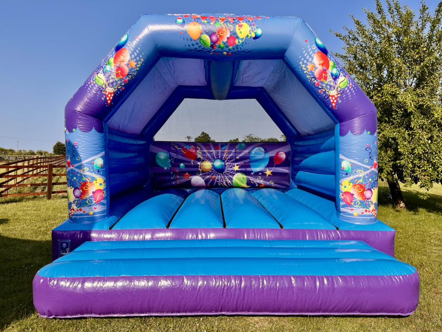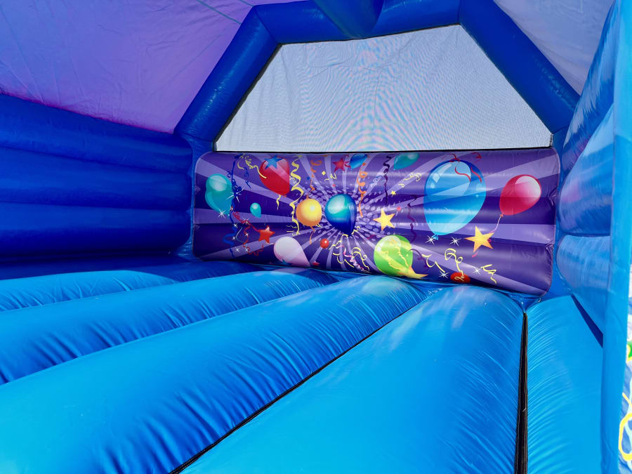Make your event pop with colour and energy with our Blue & Purple Party Bouncy Castle – a vibrant inflatable that’s guaranteed to keep kids entertained for hours. With its bold colour combination of electric blue and deep purple, and its playful party artwork featuring balloons, streamers, and stars, this castle brings instant fun to any occasion.