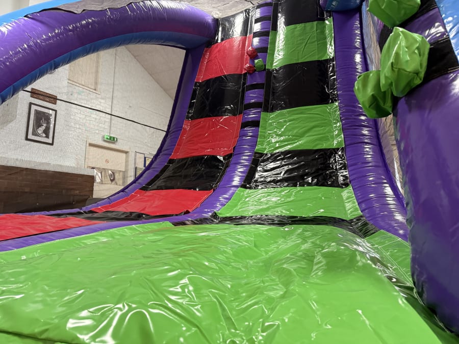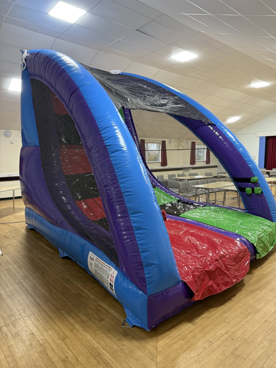 Perfect for indoor or outdoor use, the Challenge Wall brings fun, interactive inflatable challenges to any event in St Neots, Biggleswade, and Biddenham, or village parties in Bromham, Northill, and Gamlingay. Its vibrant sky blue and purple colours tie in with other giant inflatables from our range, making it a perfect addition to packages with our 65ft Obstacle Course, Giant Slide, Unclimbable Ladder, or Demolition Derby (Wrecking Ball).