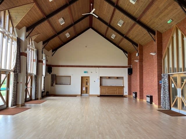 The venue also boasts a well-equipped kitchen with a serving hatch into the hall, an entrance lobby with a cloakroom for bags and coats, and easy access to modern toilets.
