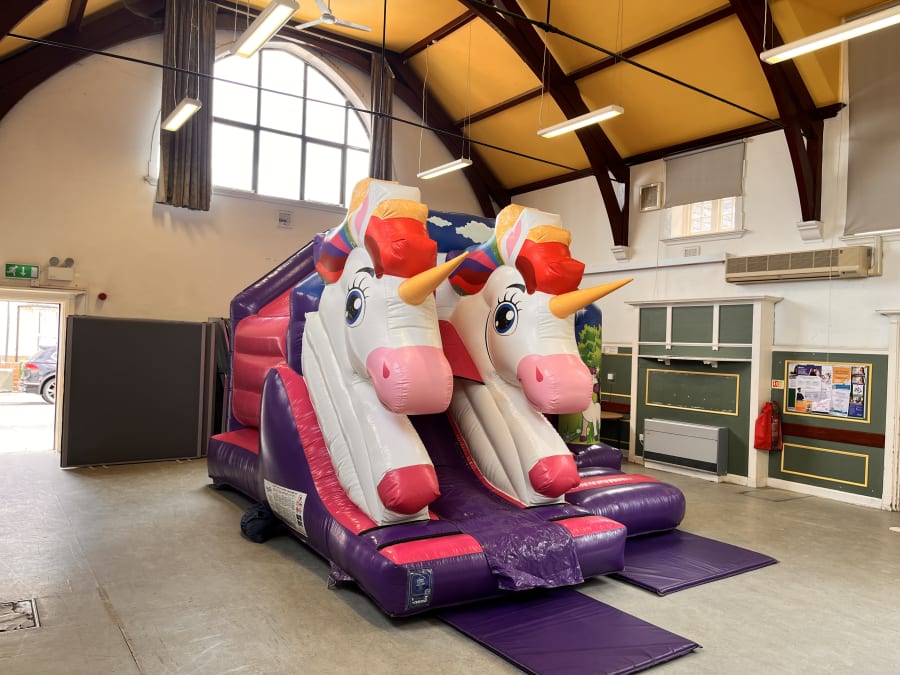 The large hall and high ceiling provide ample space for a variety of inflatables, including: