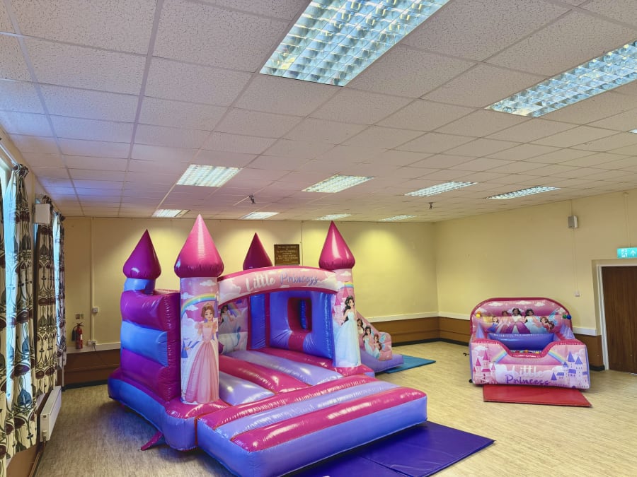 The main hall is generous in size, offering a flexible square footprint that suits everything from standard bouncy castles to themed party setups. The ceiling height is reasonable too – suitable for most inflatables – although some of our larger units may be limited, so it’s always worth checking your preferred castle against the hall’s height measurements.