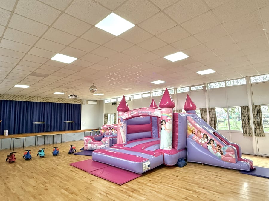 The hall is also very well suited to our inflatable party packages, combining a bouncy castle or combi with soft play, ball pools, didicars or giant games. With its adjoining playing fields and village park, along with a generous private car park, the venue is practical as well as flexible.